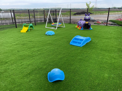 This is the outside puppy area. When puppies are around 6 weeks old they are taken outside on a regular basis for playtime and to work on potty training.